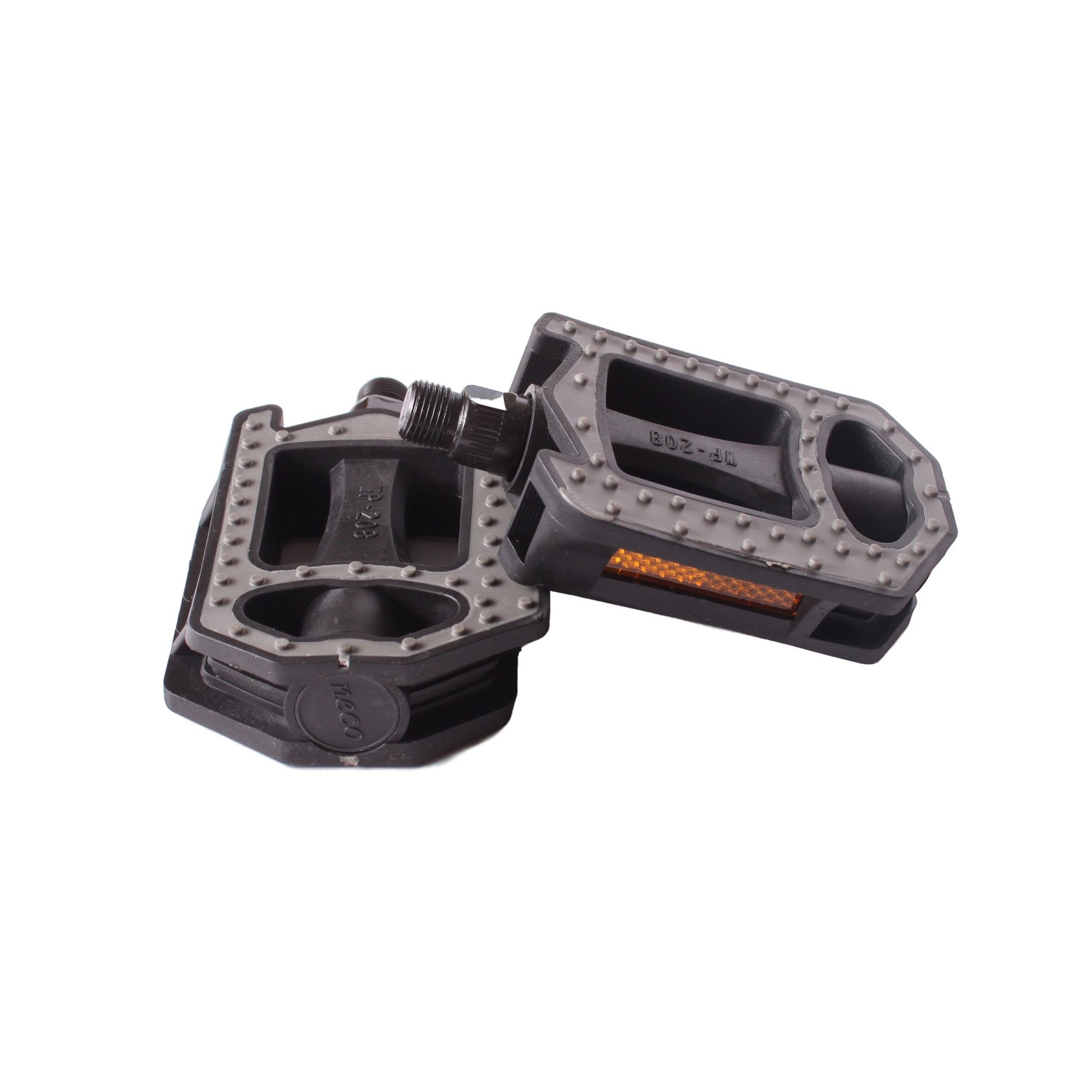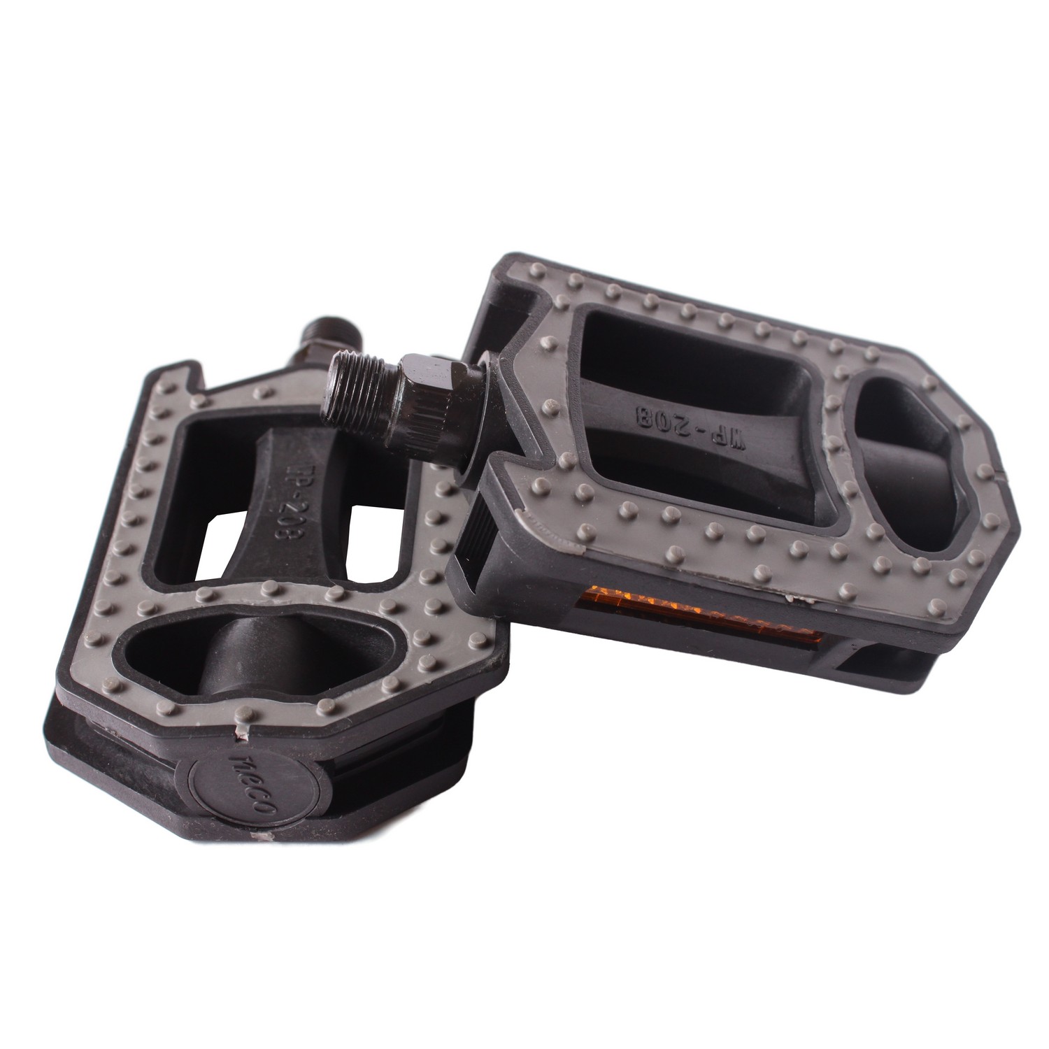 Педали Neco WP-208 — надёжные и практичные платформенные педали для повседневной езды и активного отдыха. Их корпус выполнен из прочного цельного чёрного полипропилена с вставками из серой резины, обеспечивающей отличное сцепление даже во влажную погоду. Встроенные светоотражатели повышают безопасность в условиях слабого освещения, а стальная ось с резьбой 9/16″ гарантирует долговечность и совместимость со всеми стандартными шатунами. Лёгкие (всего 404,5 г за пару) и компактные (114 × 85 мм), они станут отличным выбором для городских и туристических велосипедов.