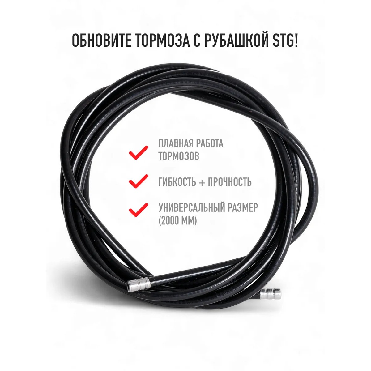 Рубашка троса тормоза STG длиной 2 метра — надёжная и долговечная оплётка для механических тормозных систем велосипеда. Изготовлена из прочной стальной проволоки с защитным чёрным PVC-покрытием, обеспечивает плавную передачу усилия и устойчивость к износу, влаге и коррозии. Внутри нейлоновое покрытие для максимально эффективного скольжения троса. Диаметр 5 мм гарантирует совместимость с элементами крепления на велосипеде. Фирменная картонная упаковка подчеркивает серьезность бренда. Идеально подходит для ремонта, замены или самостоятельной сборки тормозной системы. Произведена в Китае с соблюдением стандартов качества.