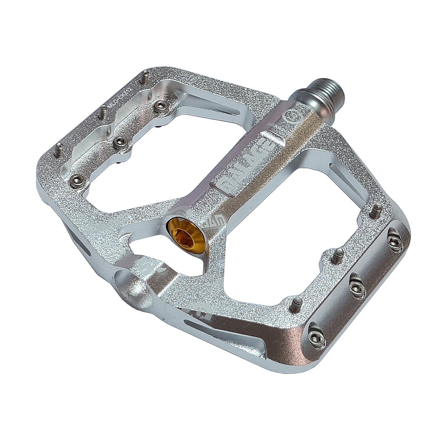 Педали MalaGe MLG-CK212 — прочные и надёжные платформенные педали для горных велосипедов, разработанные для езды по сложному рельефу и агрессивного катания. Корпус выполнен из фрезерованного алюминия, что обеспечивает высокую жёсткость и устойчивость к ударам. Размер платформы — 100 × 110 мм, благодаря чему стопа надёжно фиксируется даже в движении. Ось из хром-молибденовой стали с резьбой 9/16″ гарантирует долговечность и совместимость со всеми стандартными шатунами. В конструкции использованы 3 промышленных подшипника для плавного вращения, они надежно защищены от пыли и влаги. Для максимального сцепления с обувью предусмотрены сменные шипы — по 6 с каждой стороны (всего 12 шт. на одну педаль).