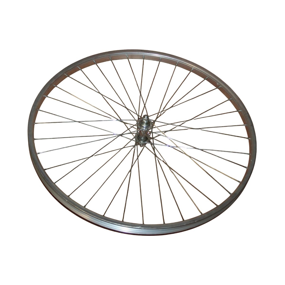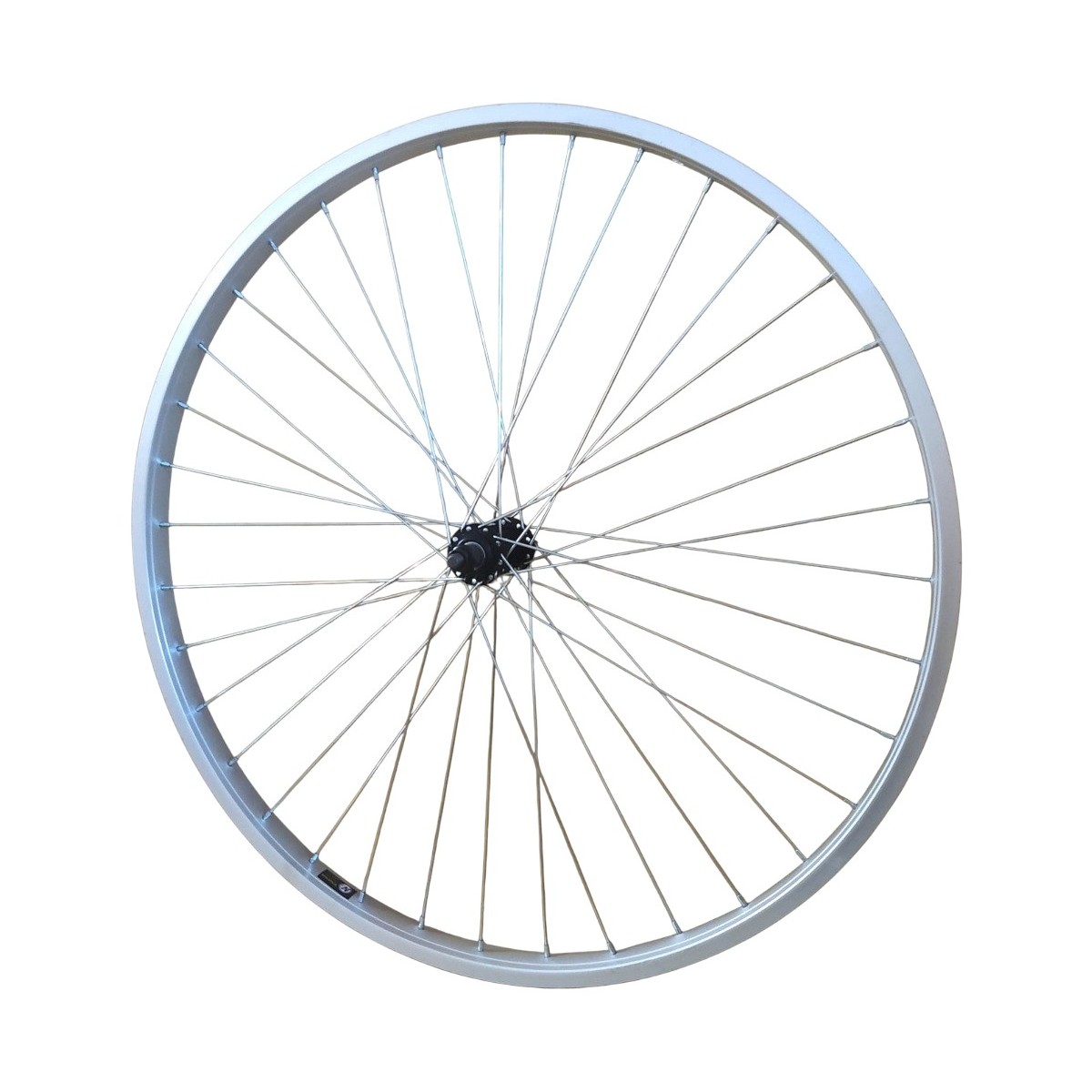 Переднее колесо в сборе ZVO24126 диаметром 28 дюймов — надёжный и лёгкий компонент для дорожных прогулочных велосипедов. Оснащено прочным одинарным алюминиевым ободом, который обеспечивает хорошую жёсткость при низком весе, что особенно важно для комфортной езды по асфальту. Стальная втулка с насыпными подшипниками гарантирует плавный ход и простоту обслуживания даже при длительной эксплуатации. Колесо крепится к вилке с помощью стандартных гаек, что обеспечивает надёжную фиксацию без необходимости в специальных инструментах. Идеально подходит для повседневных поездок до места учебы или работы, сочетая практичность, долговечность и доступную цену.