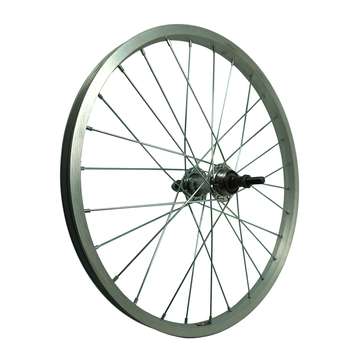 Заднее колесо в сборе ZXX18798 диаметром 20 дюймов — практичное и надёжное решение для детских и складных прогулочных велосипедов. Оснащено лёгким одинарным алюминиевым ободом, обеспечивающим устойчивость и комфорт при езде по городу или парку. Стальная втулка с насыпными подшипниками гарантирует плавный ход и простоту обслуживания даже при частом использовании. Колесо имеет резьбу под установку классической трещотки, что делает его совместимым с большинством базовых трансмиссий. Крепление к раме осуществляется с помощью стандартных гаек, обеспечивая надёжную фиксацию без необходимости в специальных инструментах.