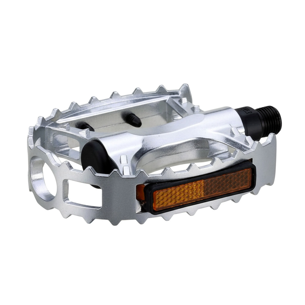 Педали P819 — практичный и безопасный выбор для прогулочных и детских велосипедов. Их алюминиевая платформа размером 97 × 93 мм обеспечивает надёжную опору для ноги, а лёгкий вес способствует комфортной езде. Стальная ось с резьбой 1/2″ гарантирует прочное крепление к шатунам и долговечность при ежедневной эксплуатации. В конструкции использованы насыпные подшипники, обеспечивающие плавный ход и простоту обслуживания. Для повышения безопасности в условиях недостаточной видимости в педали встроены светоотражатели — по одному с каждой стороны. Серебристый цвет придаёт изделию аккуратный и современный вид.