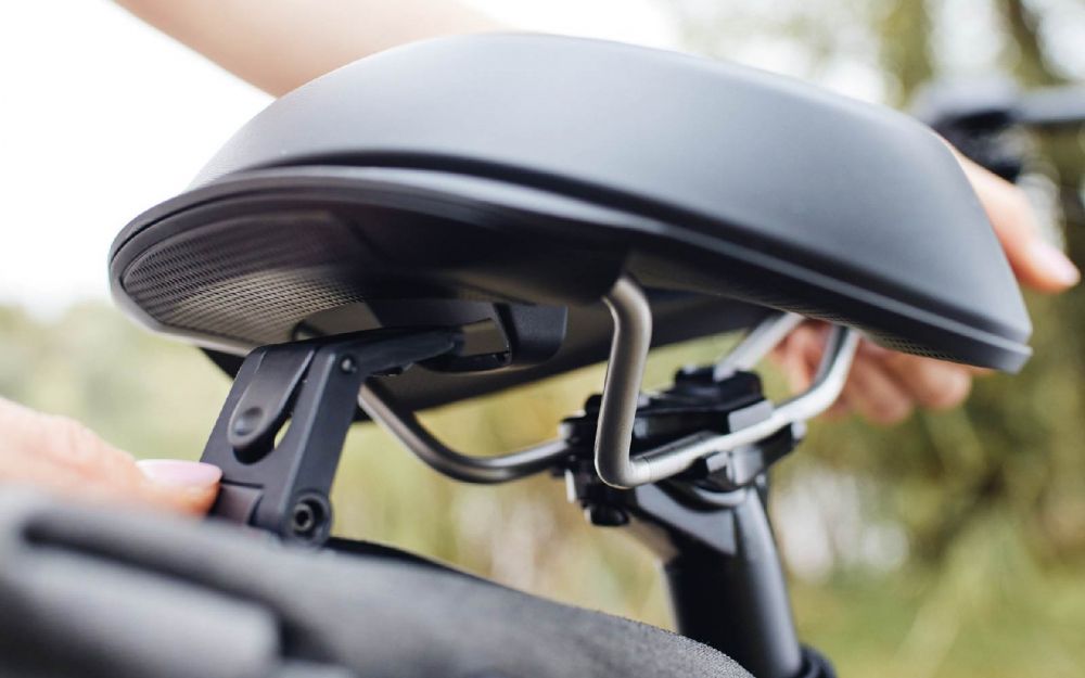 - Дизайн E-Fit — волнообразный профиль с приподнятой задней частью для стабильной посадки на электровелосипедах
