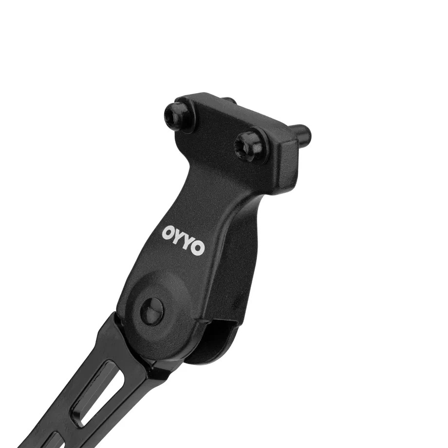 Телескопическая подножка OYYO KS11 - лёгкое и надёжное решение для велосипедов с колёсами диаметром 24, 26, 27.5, 28 и 29 дюймов. Она монтируется на нижнее заднее перо рамы, где предусмотрена специальная площадка для крепления. Расстояние между монтажными отверстиями - 40 мм, что соответствует стандарту и обеспечивает прочную фиксацию. Длина подножки регулируется с помощью удобного рычага на внутренней стороне. Изготовленная из алюминия, она дополнена опорной площадкой из прочного пластика, которая гарантирует устойчивость даже на мягком или неровном покрытии. Упругая пружина облегчает складывание и раскладывание подножки, а также минимизирует шум при езде по бездорожью.