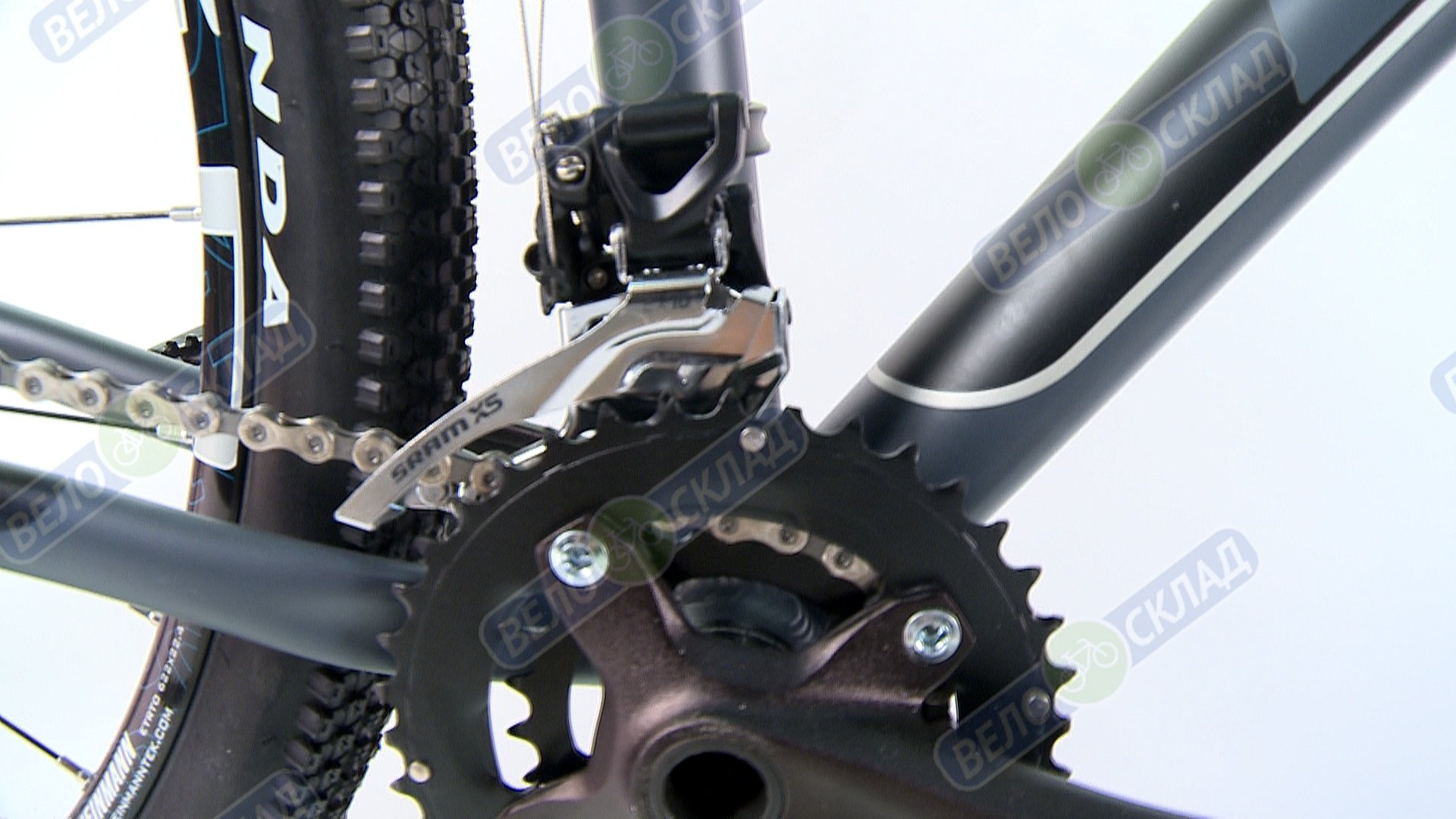 Передает вращение от шатунов на кассету. Теоретически цепь представляет собой подшипники скольжения (втулки), соединенные между собой боковыми пластинами. Цепи разнятся по длине, то есть количеству звеньев, и по ширине. Чем больше скоростей на велосипеде, тем цепь уже. Данный элемент является открытым, поэтому нуждается в частой смазке и чистке. Во многом плавное переключение передач, а соответственно и ход велосипеда зависят от смазки цепи и степени ее загрязнения.