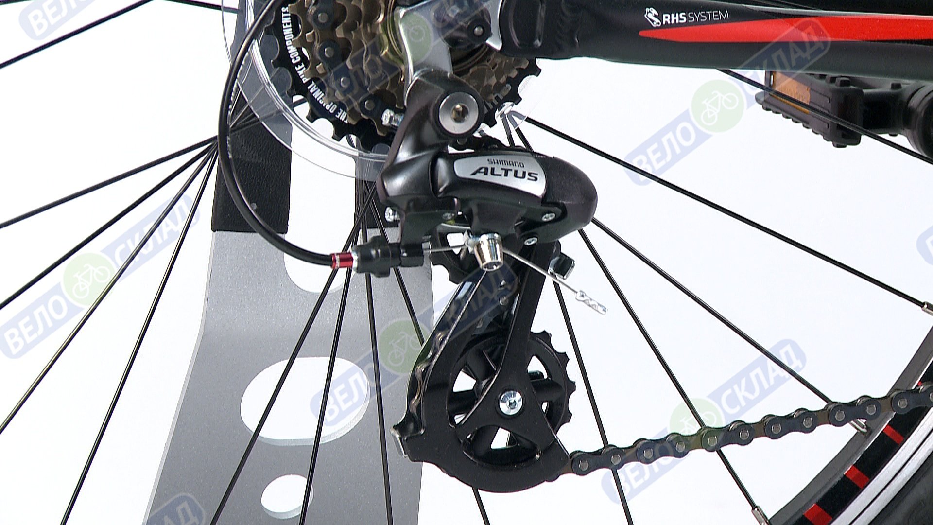 Переключает (перебрасывает) цепь на задних звездах. Принцип действия у всех одинаков — приводится в движение тросиком. Отличаются классом и производителем. Если рассматривать их взаимозаменяемость, то нужно учитывать следующие: параметры и диаметр крепежного хомута, его расположение (верхний или нижний), как подведен тросик (сверху или снизу переключателя, так называемая, тяга переключателя), а также количество зубьев на звездах. Регулировка заднего переключателя производится по тому же принципу что и регулировка переднего, однако здесь есть свои особенности. Так как данный тип оборудования достаточно обособлен от общей конструкции, некоторые велосипедисты устанавливают на ось специальную защитную скобу.
