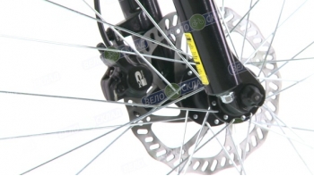 Горный велосипед с оборудованием начального класса Shimano, 24 скорости. Технические особенности: алюминиевая рама Custom Alu 6061.T6, амортизационная вилка SR Suntour XCT, двойные обода Weinmann U28 Sport, дисковые гидравлические тормоза Tektro HDC290. Подходит для активной езды по различным дорогам и пересеченной местности. Диаметр колес - 26 дюймов. Вес - 14,9 кг.