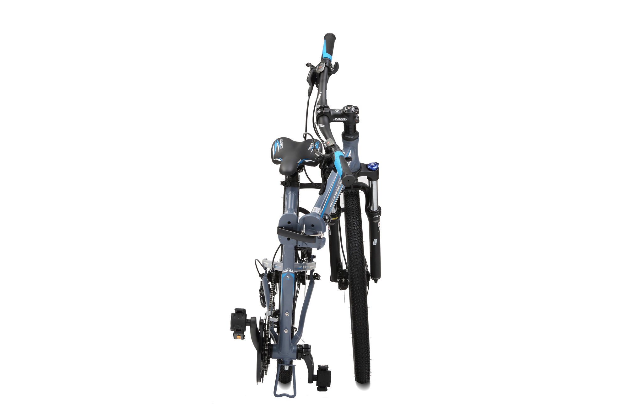 Складной прогулочный велосипед с оборудованием предпрофессионального класса Shimano, 27 скоростей. Технические особенности: прочная алюминиевая рама, амортизационная вилка RockShox FS XC28TK, двойные алюминиевые обода WTB SX17, дисковые гидравлические тормоза Shimano BRM396. Подходит для прогулочной езды по шоссе и ровным проселочным дорогам. Диаметр колес - 26 дюймов. Вес - 15,3 кг.