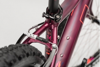 Женский горный велосипед с оборудованием начального любительского класса Shimano, 8 скоростей. Технические особенности: легкая алюминиевая рама (сплав 6061, скрытая прокладка тросов, рулевой стакан ZS, каретка BSA, закладные для багажника и флягодержателя, съёмный петух), амортизационная вилка 2ROXX 362 (пружинно-эластомерная, рабочий ход 100 мм, алюминиевые штаны, ноги 32 мм, блокировка, дропауты 10 мм, специальное покрытие ног QPQ), двойные алюминиевые обода (под AV ниппель), дисковые гидравлические тормоза Shimano MT-200 (роторы 160/160 мм). Подходит для активной езды по различным дорогам и пересеченной местности. Диаметр колес - 27,5 дюймов. Вес - 14,6 кг.