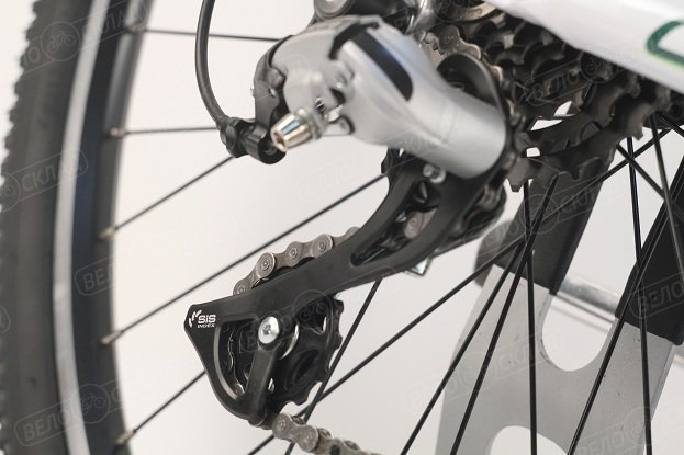 Переключает (перебрасывает) цепь на задних звездах. Принцип действия у всех одинаков — приводится в движение тросиком. Отличаются классом и производителем. Если рассматривать их взаимозаменяемость, то нужно учитывать следующие: параметры и диаметр крепежного хомута, его расположение (верхний или нижний), как подведен тросик (сверху или снизу переключателя, так называемая, тяга переключателя), а также количество зубьев на звездах. Регулировка заднего переключателя производится по тому же принципу что и регулировка переднего, однако здесь есть свои особенности. Так как данный тип оборудования достаточно обособлен от общей конструкции, некоторые велосипедисты устанавливают на ось специальную защитную скобу.