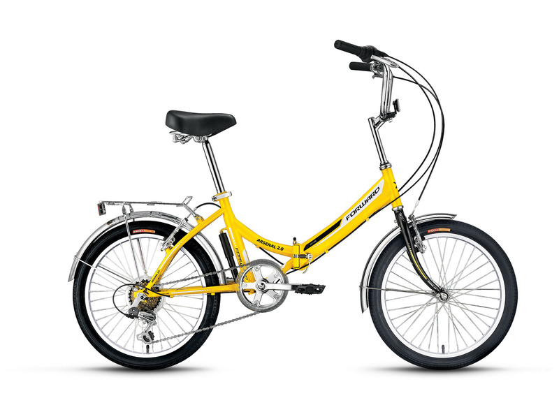 Складной прогулочный велосипед с оборудованием начального класса Shimano, 6 скоростей. Технические особенности: прочная стальная рама, жесткая вилка, двойные обода Forward DW, надежные ободные тормоза Promax TX-119 V-Brake, багажник, длинные стальные крылья, звонок, насос. Подходит для прогулочной езды по шоссе и несложной пересеченной местности. Диаметр колес - 20 дюйма. Вес - 15 кг.