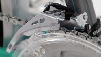Переключает (перебрасывает) цепь на передних звездах. Принцип действия у всех одинаков — приводится в движение тросиком. Отличаются классом оборудования. Если рассматривать их взаимозаменяемость, то нужно учитывать следующие: параметры и диаметр крепежного хомута, его расположение (верхний или нижний), как подведен тросик (сверху или снизу переключателя, так называемая, тяга переключателя), а также количество зубьев на звездах. Переключатель имеет достаточно простое строение, что обуславливает сравнительно простую настройку и регулировку. Стоимость модели, как правило зависит от качества изготовления и веса модели.