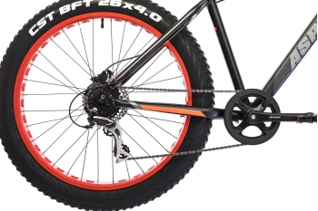 Велосипед повышенной проходимости (фэтбайк) с оборудованием любительского класса Shimano, 8 скоростей. Технические особенности: алюминиевая рама Alu 6061 Fat, жесткая вилка Alu 6061, двойные алюминиевые обода, дисковые гидравлические тормоза Shimano BR-M315. Подходит для езды по практически всем типам дорожного покрытия в различных погодных условиях (дождь, снег). Диаметр колес - 26 дюймов. Вес - 15,44 кг.