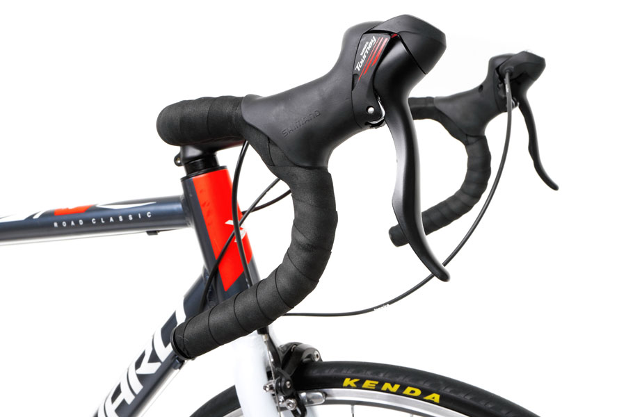 Шоссейный велосипед начального уровня с навесным оборудованием Shimano, 14 скоростей. Технические особенности: алюминиевая рама сплав 6061, жесткая алюминиевая вилка, двойные обода Weinmann SP17, надежные ободные тормоза клещевого типа Promax RC-481. Подходит для быстрой спортивной езды по шоссе. Диаметр колес - 28 дюймов. Вес - 10,9 кг.