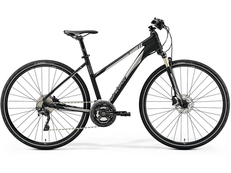Женский дорожный велосипед с оборудованием профессионального класса Shimano, 30 скоростей. Технические особенности: алюминиевая рама Crossway TFS, амортизированная вилка Suntour NCX E-RL Air, двойные обода Merida Comp D, дисковые гидравлические тормоза Shimano MT-500. Подходит для активной езды по различным дорогам и пересеченной местности. Диаметр колес - 28 дюймов. Вес - 12,58 кг.