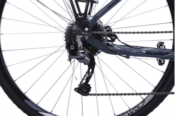 Переключает (перебрасывает) цепь на задних звездах. Принцип действия у всех одинаков — приводится в движение тросиком. Отличаются классом и производителем. Если рассматривать их взаимозаменяемость, то нужно учитывать следующие: параметры и диаметр крепежного хомута, его расположение (верхний или нижний), как подведен тросик (сверху или снизу переключателя, так называемая, тяга переключателя), а также количество зубьев на звездах. Регулировка заднего переключателя производится по тому же принципу что и регулировка переднего, однако здесь есть свои особенности. Так как данный тип оборудования достаточно обособлен от общей конструкции, некоторые велосипедисты устанавливают на ось специальную защитную скобу.