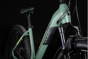 Электровелосипед-гибрид с оборудованием начального профессионального класса Sram, 12 скоростей. Технические особенности: алюминиевая рама Aluminium Superlite, амортизационная вилка RockShox Recon RL Air, двойные обода CUBE EX30, дисковые гидравлические тормоза Shimano BR-MT420, электромотор Bosch Drive Unit Performance CX Generation 4 (75Nm) Cruise (250Watt), батарея Bosch PowerTube 625, велокомпьютер Bosch Intuvia, длинные крылья, система освещения, подножка, звонок. Подходит для активной езды по различным дорогам и пересеченной местности. Диаметр колес - 29 дюймов. Вес - 25.7 кг.