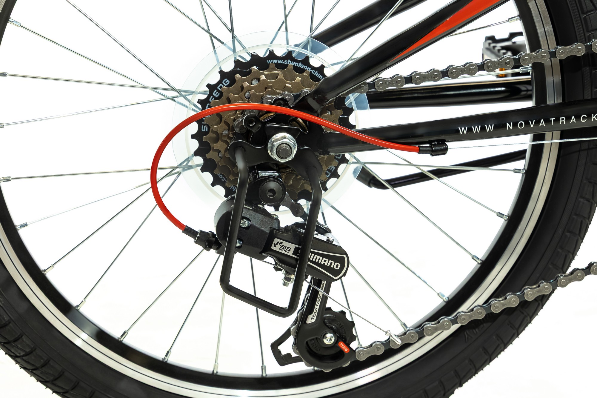 Переключает (перебрасывает) цепь на задних звездах. Принцип действия у всех одинаков — приводится в движение тросиком. Отличаются классом и производителем. Если рассматривать их взаимозаменяемость, то нужно учитывать следующие: параметры и диаметр крепежного хомута, его расположение (верхний или нижний), как подведен тросик (сверху или снизу переключателя, так называемая, тяга переключателя), а также количество зубьев на звездах. Регулировка заднего переключателя производится по тому же принципу что и регулировка переднего, однако здесь есть свои особенности. Так как данный тип оборудования достаточно обособлен от общей конструкции, некоторые велосипедисты устанавливают на ось специальную защитную скобу.