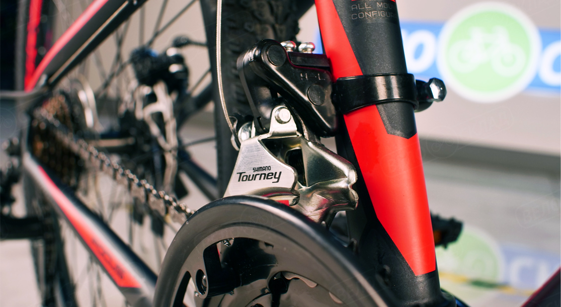 Переключает (перебрасывает) цепь на передних звездах. Принцип действия у всех одинаков — приводится в движение тросиком. Отличаются классом оборудования. Если рассматривать их взаимозаменяемость, то нужно учитывать следующие: параметры и диаметр крепежного хомута, его расположение (верхний или нижний), как подведен тросик (сверху или снизу переключателя, так называемая, тяга переключателя), а также количество зубьев на звездах. Переключатель имеет достаточно простое строение, что обуславливает сравнительно простую настройку и регулировку. Стоимость модели, как правило зависит от качества изготовления и веса модели.