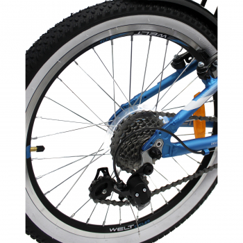 Переключает (перебрасывает) цепь на задних звездах. Принцип действия у всех одинаков — приводится в движение тросиком. Отличаются классом и производителем. Если рассматривать их взаимозаменяемость, то нужно учитывать следующие: параметры и диаметр крепежного хомута, его расположение (верхний или нижний), как подведен тросик (сверху или снизу переключателя, так называемая, тяга переключателя), а также количество зубьев на звездах. Регулировка заднего переключателя производится по тому же принципу что и регулировка переднего, однако здесь есть свои особенности. Так как данный тип оборудования достаточно обособлен от общей конструкции, некоторые велосипедисты устанавливают на ось специальную защитную скобу.