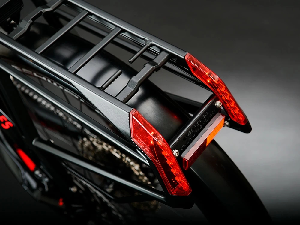Переключает (перебрасывает) цепь на задних звездах. Принцип действия у всех одинаков — приводится в движение тросиком. Отличаются классом и производителем. Если рассматривать их взаимозаменяемость, то нужно учитывать следующие: параметры и диаметр крепежного хомута, его расположение (верхний или нижний), как подведен тросик (сверху или снизу переключателя, так называемая, тяга переключателя), а также количество зубьев на звездах. Регулировка заднего переключателя производится по тому же принципу что и регулировка переднего, однако здесь есть свои особенности. Так как данный тип оборудования достаточно обособлен от общей конструкции, некоторые велосипедисты устанавливают на ось специальную защитную скобу.