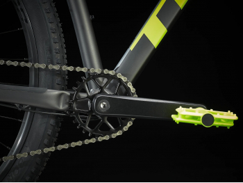 Передает вращение от шатунов на кассету. Теоретически цепь представляет собой подшипники скольжения (втулки), соединенные между собой боковыми пластинами. Цепи разнятся по длине, то есть количеству звеньев, и по ширине. Чем больше скоростей на велосипеде, тем цепь уже. Данный элемент является открытым, поэтому нуждается в частой смазке и чистке. Во многом плавное переключение передач, а соответственно и ход велосипеда зависят от смазки цепи и степени ее загрязнения.