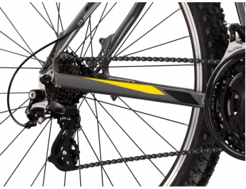 Передает вращение от шатунов на кассету. Теоретически цепь представляет собой подшипники скольжения (втулки), соединенные между собой боковыми пластинами. Цепи разнятся по длине, то есть количеству звеньев, и по ширине. Чем больше скоростей на велосипеде, тем цепь уже. Данный элемент является открытым, поэтому нуждается в частой смазке и чистке. Во многом плавное переключение передач, а соответственно и ход велосипеда зависят от смазки цепи и степени ее загрязнения.