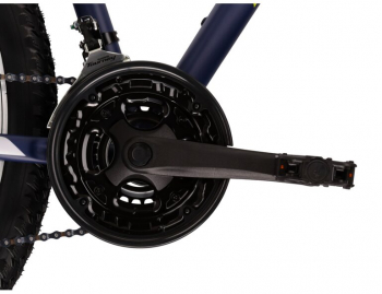 Горный велосипед с оборудованием начального любительского класса Shimano, 21 скорость. Технические особенности: алюминиевая рама Aluminium Performance, амортизационная вилка Kross, двойные алюминиевые обода Kross, надежные ободные тормоза. Подходит для активной езды по различным дорогам и пересеченной местности. Диаметр колес - 27.5 дюймов. Вес - 14.17 кг.