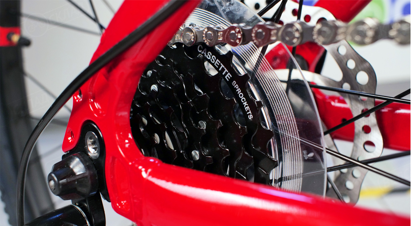 Установлена на задней втулке и представляет собой блок, составленный из звезд с разным количеством зубьев. Количество звезд на велосипеде доходит до 10 штук. Существует два варианта конструкции кассет. Первый — это, собственно, кассета, она устанавливается на шлицы барабана, смонтированного на задней втулке. Второй — это, когда барабан выполняет единое целое со звездами, а на втулку наворачивается по резьбе.