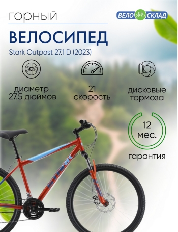 Stark Outpost 27.1 D идеальный выбор для начинающих велосипедистов, стремящихся освоить езду по различным типам дорог и пересеченной местности. Этот горный велосипед сочетает надежность, комфорт и высокую производительность, что делает его отличным выбором для прогулок и активного отдыха.