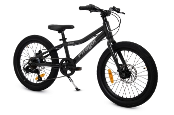 Велосипед предназначенный для детей в возрасте от пяти до девяти лет, с оборудованием начального класса, 7 скоростей. Технические особенности: алюминиевая рама, жесткая стальная вилка, двойные алюминиевые обода, дисковые механические тормоза (роторы 160/160 мм), подножка, катафоты, задний фонарик, крылья, насос, ключи для обслуживания, звонок. Подходит для обучения и прогулочного катания в городских условиях. Диаметр колес - 20 дюймов. Вес - 10,4 кг.