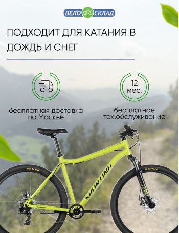 Горный велосипед начального уровня с оборудованием начального класса Shimano, 8 скоростей. Технические особенности: стальная рама, амортизационная вилка FWD 286, двойные алюминиевые обода, дисковые механические тормоза Repute DSC-310. Подходит для прогулочной езды по различным дорогам и пересеченной местности. Диаметр колес - 29 дюймов. Вес - 16,9 кг.
