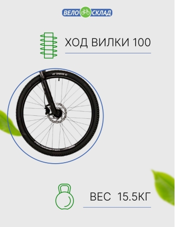 Амортизационная вилка STG Spice HLO: Ход вилки составляет 100 мм, что гарантирует комфортное преодоление неровностей на дороге, а гидравлическая блокировка позволяет адаптироваться к различным условиям езды.