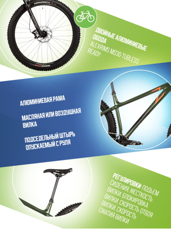 Двойные алюминиевые обода Alexrims MD30 Tubless Ready: Пистонированные обода, совместимые с бескамерной резиной, гарантируют высокую прочность и улучшенное сцепление с дорогой.