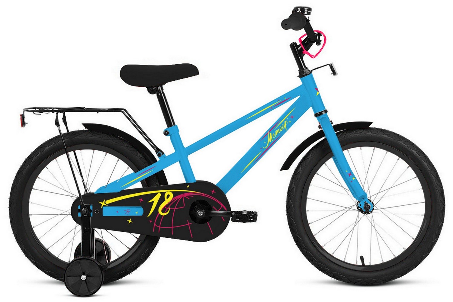 - Дополнительные элементы: Полная защита цепи предотвращает попадание одежды в механизм, а боковые съемные колеса обеспечивают стабильность и помогают детям учиться ездить.