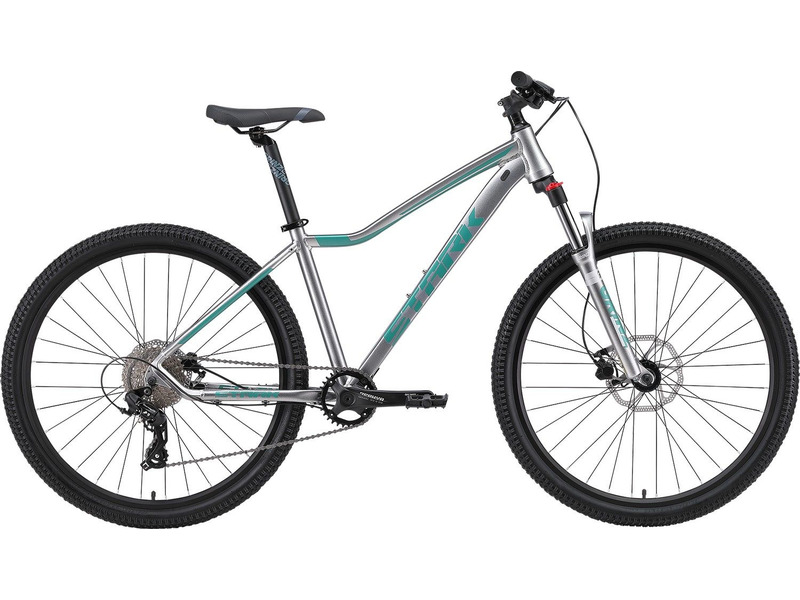 Женский горный велосипед c оборудованием начального любительского класса Shimano, 8 скоростей. Технические особенности: легкая алюминиевая рама AL-6061 (гидроформинг, внутренняя проводка всех трсов), амортизационная вилка Grinz ES-451 MLO (пружинно-эластомерная, ход 100 мм, предварительная нагрузка, блокировка), двойные алюминиевые обода Qijian DA-18, дисковые гидравлические тормоза Tektro HD-M275 (роторы 180/160 мм). Подходит для активной езды по различным дорогам и пересеченной местности. Диаметр колес - 27,5 дюймов. Вес - 14 кг.