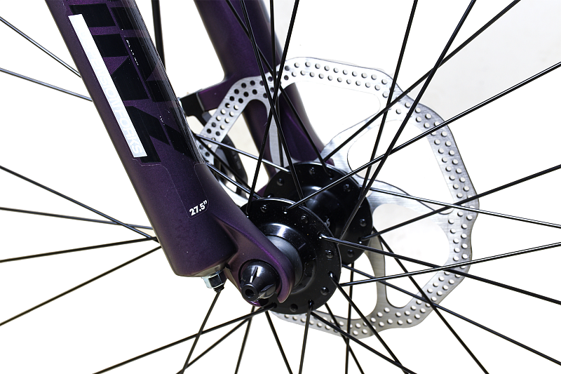 Женский горный велосипед c оборудованием начального любительского класса Shimano, 8 скоростей. Технические особенности: алюминиевая рама AL-6061 (гидроформинг, внутренняя проводка всех трсов), амортизационная вилка Grinz ES-451 MLO (пружинно-эластомерная, ход 100 мм, предварительная нагрузка, блокировка), двойные алюминиевые обода Qijian DA-18, дисковые механические тормоза Repute DSC320 (роторы 180/160 мм). Подходит для активной езды по различным дорогам и пересеченной местности. Диаметр колес - 27,5 дюймов. Вес - 14,1 кг.
