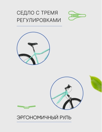 - Оборудование начального класса Microshift: Велосипед оснащен 7-скоростной трансмиссией, обеспечивающей широкий диапазон передач для любых условий.