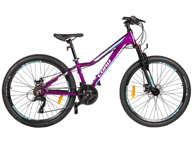 Горный подростковый велосипед для девочек с оборудованием начального класса Microshift, 24 скорость. Технические особенности: легкая алюминиевая рама (заниженная геометрия, съемный петух, кареточный стакан BSA), амортизационная вилка (ход 95 мм, блокировка хода вилки, регулировка жесткости вилки), двойные алюминиевые обода (под AV ниппель), дисковые механические тормоза (роторы 160/160 мм с креплением на 6 болтов). Подходит для активной езды по различным дорогам и пересеченной местности. Диаметр колес - 26 дюймов. Вес - 14,8 кг.