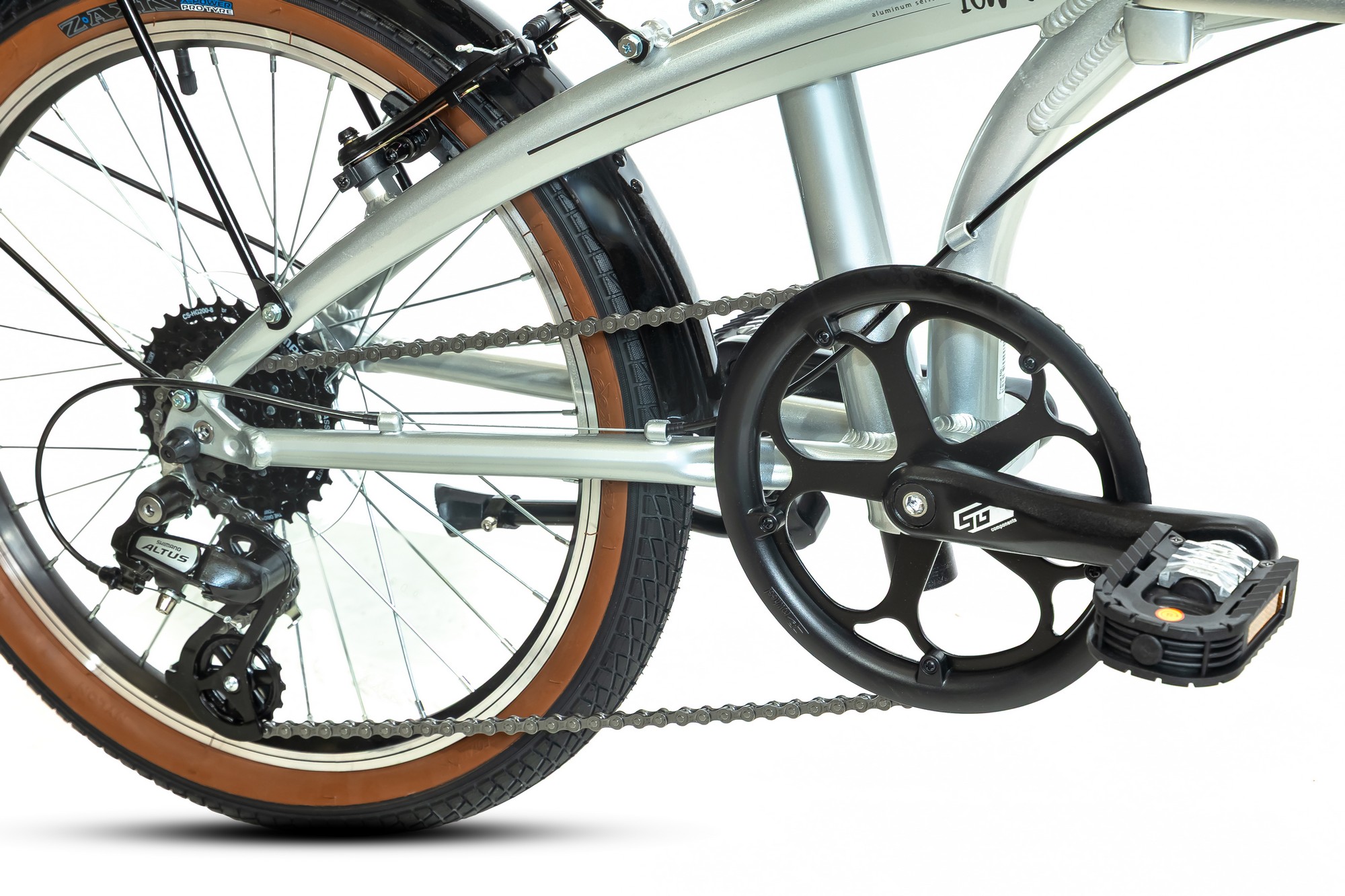 - Рама: Алюминиевая складная конструкция рамы обеспечивает прочность и легкость, а также удобство хранения и транспортировки велосипеда.