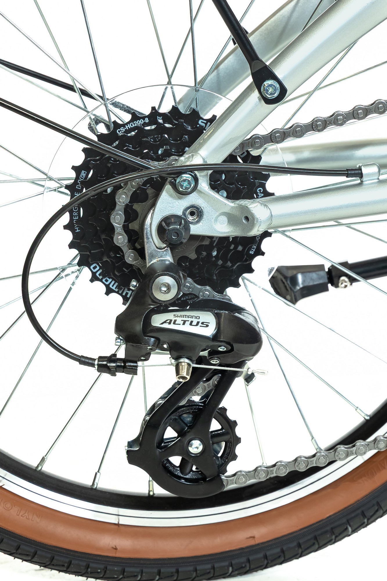 - Скорости: Велосипед оснащен оборудованием начального любительского класса Shimano с 7 скоростями, что позволяет легко подстраиваться под различные дорожные условия.