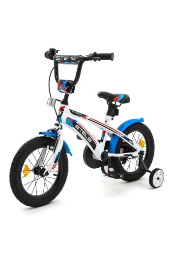 Велосипед, предназначенный для детей в возрасте от двух до четырех лет, без переключения передач. Технические особенности: прочная стальная рама, жесткая стальная вилка, передний клещевой и задний ножной тормоза, полная защита цепи, съемные боковые колеса, крылья, звонок, катафоты, мягкая накладка на руль. Подходит для обучения и легких прогулок. Диаметр колес - 14 дюймов. Вес - 9 кг.