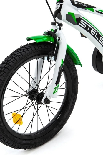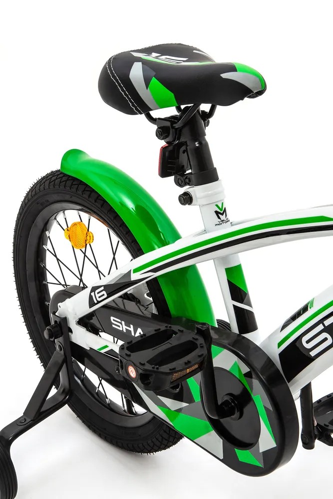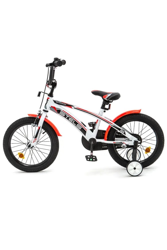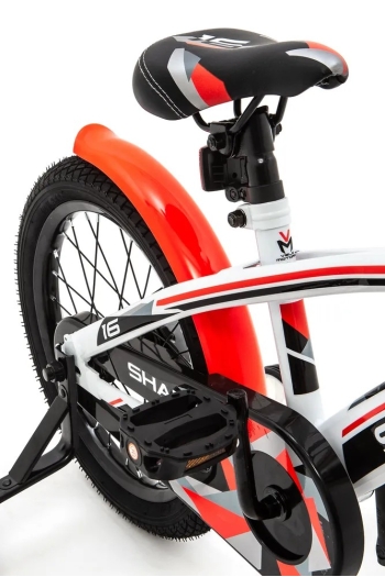 Велосипед, предназначенный для детей в возрасте от трех до шести лет, без переключения передач. Технические особенности: прочная стальная рама, жесткая стальная вилка, передний клещевой и задний ножной тормоза, полная защита цепи, съемные боковые колеса, крылья, звонок, катафоты, мягкая накладка на руль. Подходит для обучения и легких прогулок. Диаметр колес - 16 дюймов. Вес - 9,5 кг.