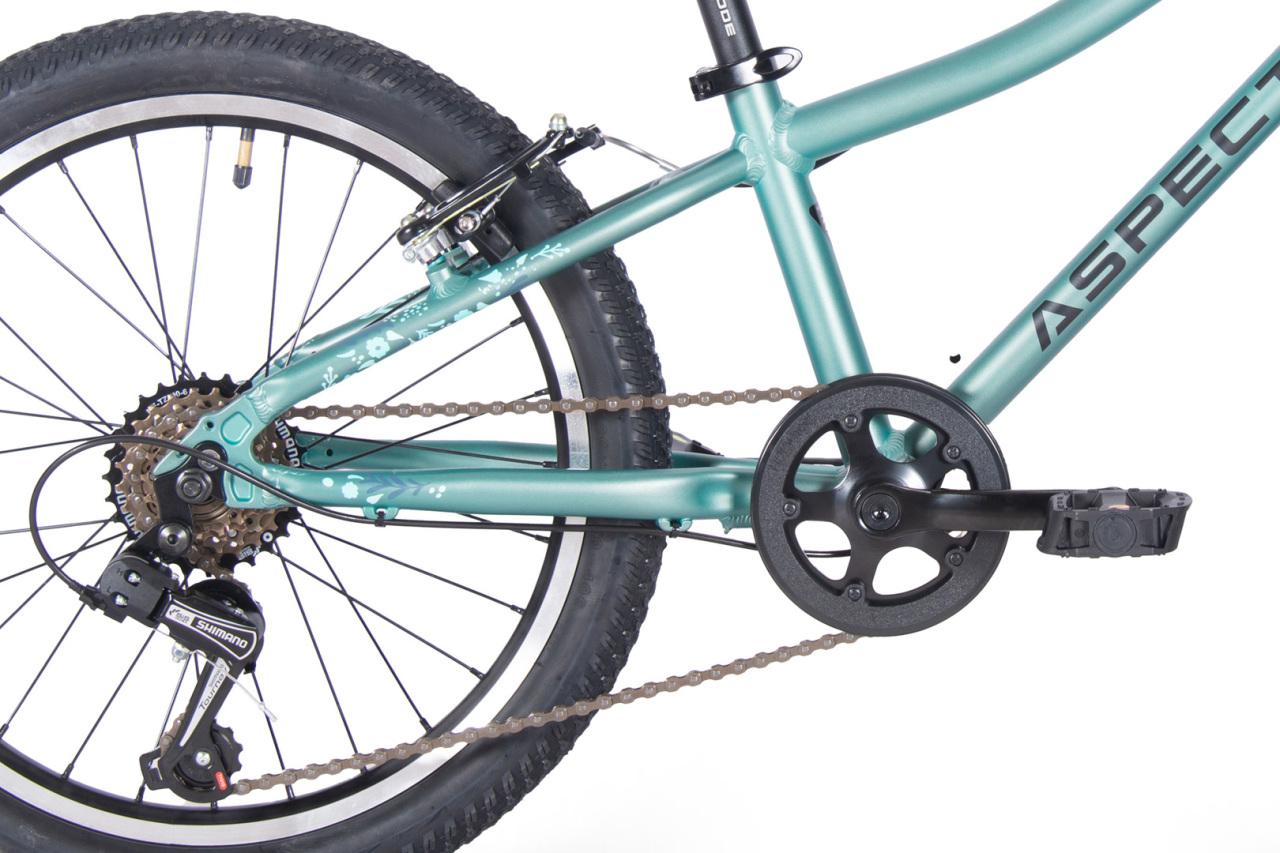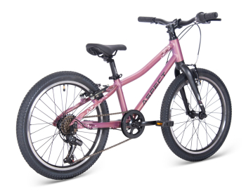 Велосипед, предназначенный для детей в возрасте от пяти до девяти лет, с оборудованием начального класса Shimano, 6 скоростей. Технические особенности: алюминиевая рама (сплав 6061, скрытая прокладка троса, каретка BSA, рулевой стакан ZS), жесткая алюминиевая вилка (сплав 6061, дропауты 10 мм), двойные алюминиевые обода Alloy Double Wall, надежные ободные тормоза V-brake. Подходит для обучения и прогулочного катания в городских условиях. Диаметр колес - 20 дюймов. Вес - 10,7 кг.
