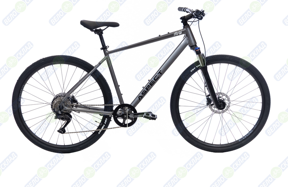 Дорожный велосипед гибридного типа с оборудованием любительского класса Shimano, 9 скоростей. Технические особенности: легкая алюминиевая рама (сплав 6061, Trekking geometry, гидроформинг, двойной баттинг, скрытая прокладка тросов, конический рулевой стакан ZS, крепление калипера PM, съёмный петух), амортизационная вилка Uding TK700 (пружинно-эластомерная, ход 65 мм, блокировка), двойные алюминиевые обода Code D23 Race (готовы под бескамерную сборку, ниппель Presta, ширина 23 мм, 32H), дисковые гидравлические тормоза Shimano MT200 (роторы 160/160 мм). Подходит для комфортного катания по городским улицам и по несложным маршрутам в лесу. Диаметр колес - 28 дюймов. Вес - 13,5 кг.