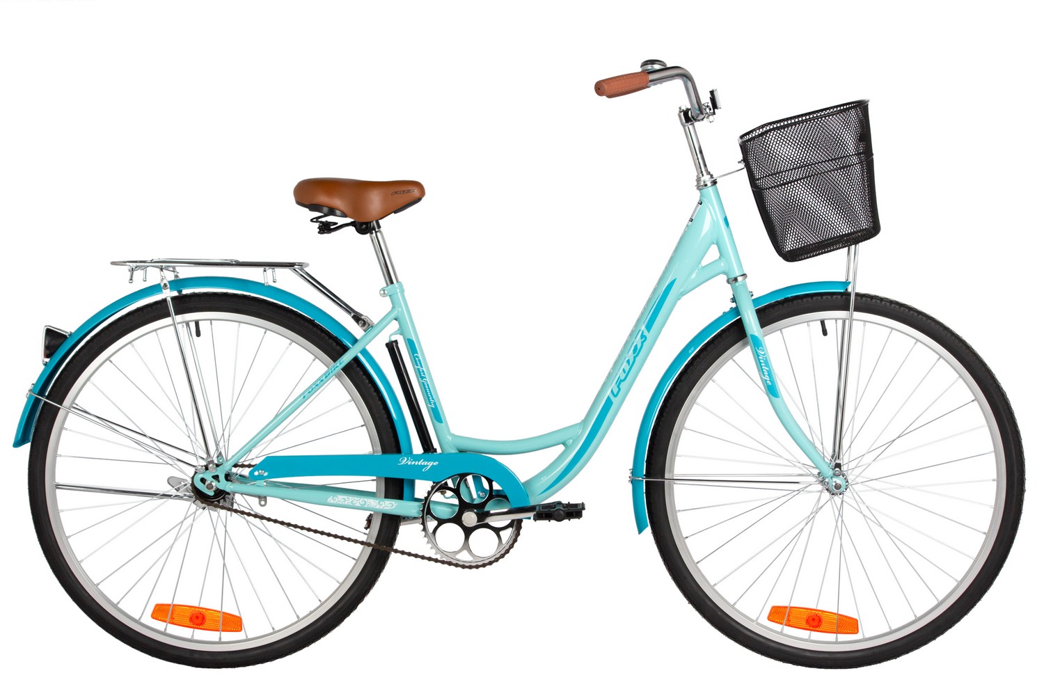 Женский дорожный велосипед без переключения передач. Технические особенности: прочная стальная рама, жесткая стальная вилка, двойные алюминиевые обода, ножные педальные тормоза, защита цепи, длинные крылья, задний багажник с зажимом, комфортное седло, передняя корзина, звонок, подножка, катафоты. Подходит для комфортного катания по городским улицам и по несложным маршрутам в лесу. Диаметр колес - 28 дюймов. Вес - 17,5 кг.