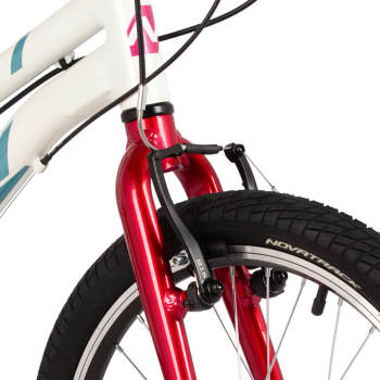 Велосипед, предназначенный для детей в возрасте от пяти до девяти лет, с оборудованием начального класса Shimano, 6 скоростей. Технические особенности: легкая алюминиевая рама (частично скрытая проводка), жесткая алюминиевая вилка, двойные алюминиевые обода (под AV ниппель), ободные механические тормоза STG V-Brake, защита цепи, защита заднего переключателя, подножка, звонок, катафоты. Подходит для обучения и прогулочного катания в городских условиях. Диаметр колес - 20 дюймов. Вес - 12,5 кг.