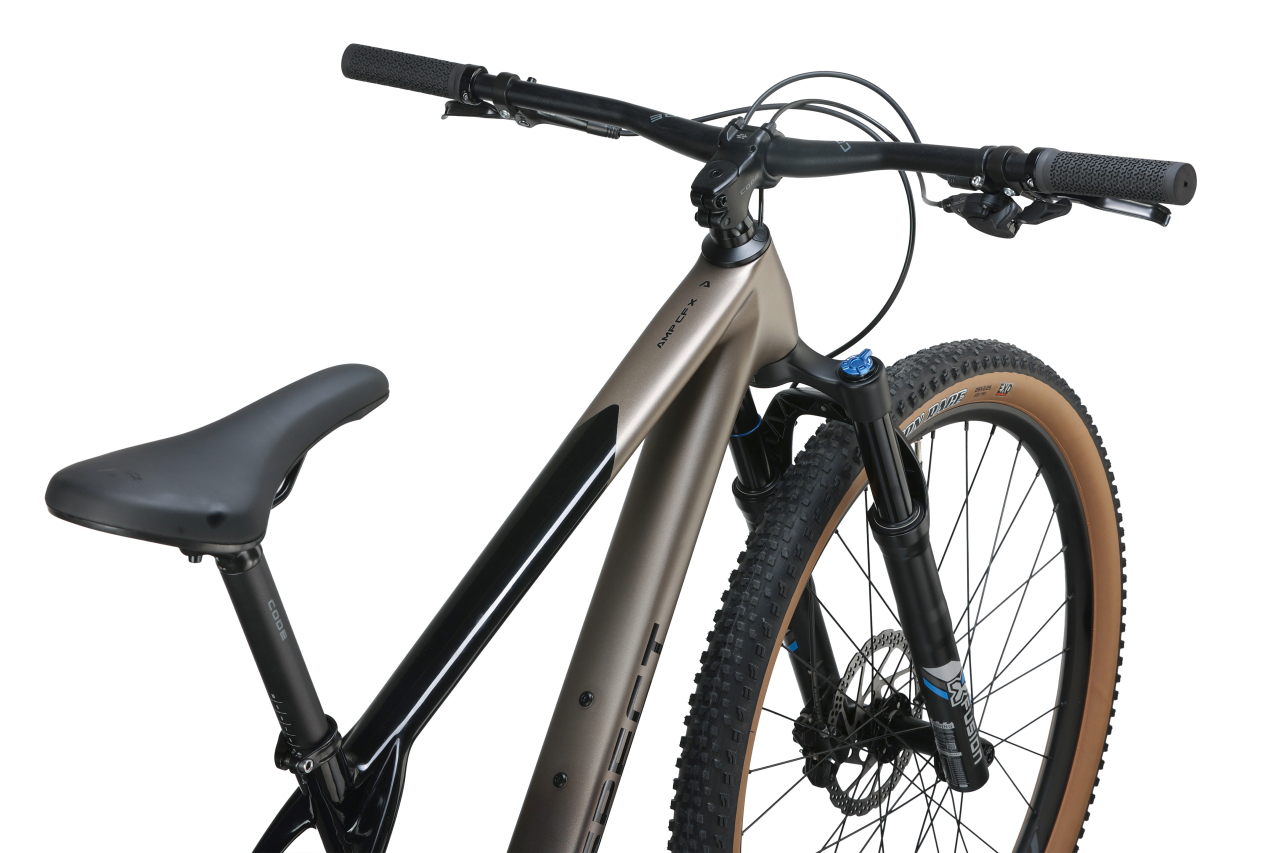 Сверхлегкий хардтейл для кросс-кантри с оборудованием профессионального класса Shimano, 12 скоростей. Технические особенности: легкая карбоновая рама Т1100 CNRP (Race геометрия, скрытая прокладка тросов, рулевой стакан 1.5″-1.5″, дропауты Boost 148х12 мм, кронштейн переключателя UDH, каретка BB-PF92, тех отверстие под трос дроппера, успокоитель цепи), амортизационная вилка X-Fusion RC32 (воздушно-масляная, регулировка низкоскоростной компрессии, регулировка отскока, ход 100 мм, ось Boost 15х110 мм, анодированные алюминиевые ноги 32 мм, конусный шток), двойные алюминиевые обода Code D23 Race (ширина 23 мм, ниппель FV, 32Н), дисковые гидравлические тормоза Shimano MT200 (роторы 180/160 мм). Подходит для спортивного катания в стиле кросс-кантри и участия в гонках. Диаметр колес - 29 дюймов. Вес - 12 кг.