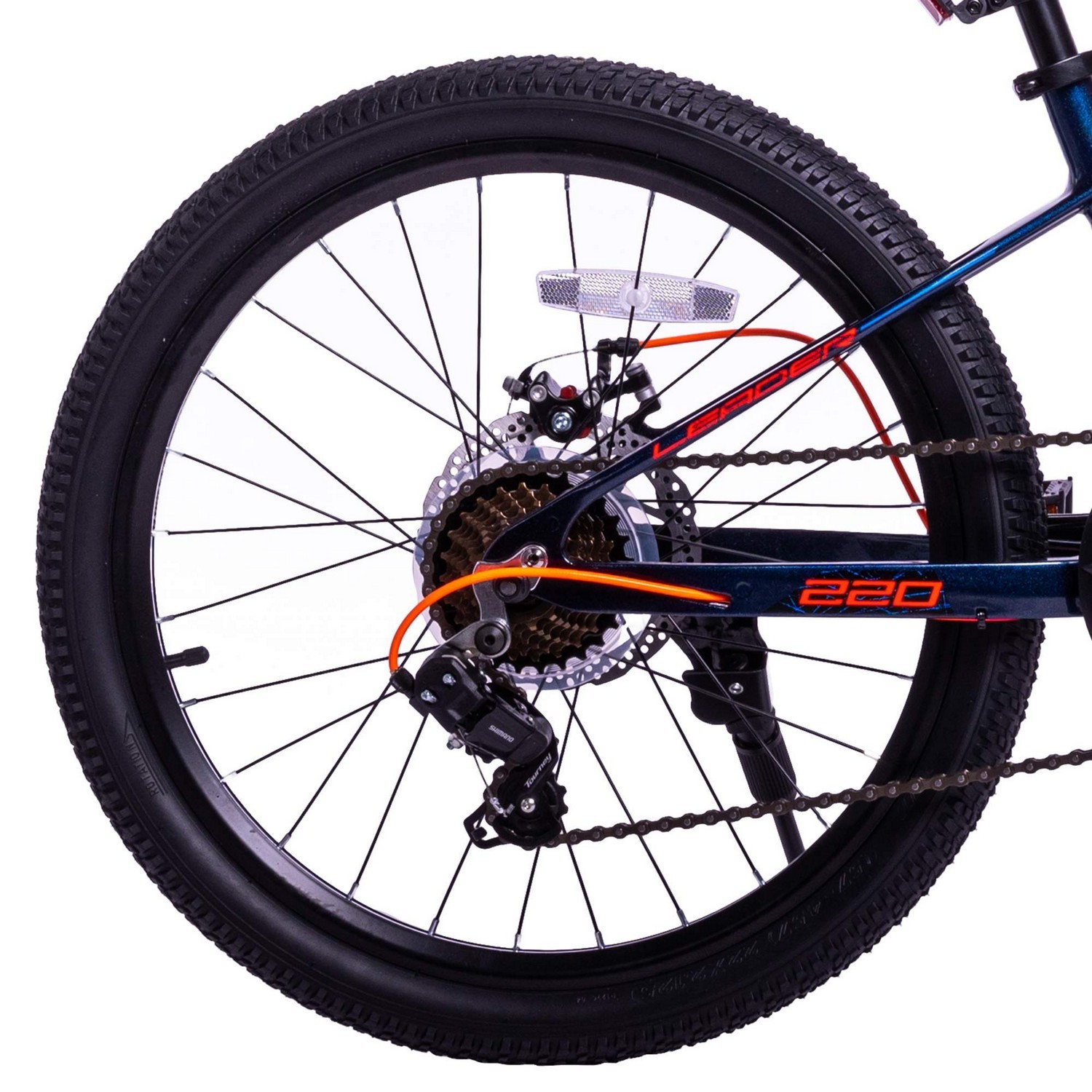 Велосипед, предназначенный для детей в возрасте от пяти до девяти лет, с оборудованием начального класса Shimano, 7 скоростей. Технические особенности: легкая рама из магниевого сплава, амортизационная вилка, двойные алюминиевые обода (под ниппель AV), дисковые механические тормоза (роторы 160/160 мм), защита цепи, катафоты, звонок, подножка. Подходит для прогулочного катания в городских условиях и по несложным маршрутам в лесу. Диаметр колес - 22 дюйма. Вес - 11 кг.