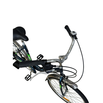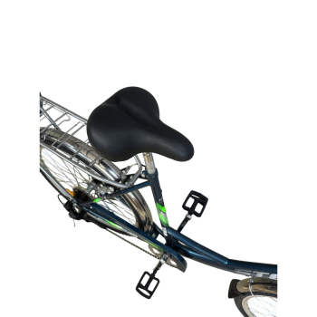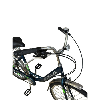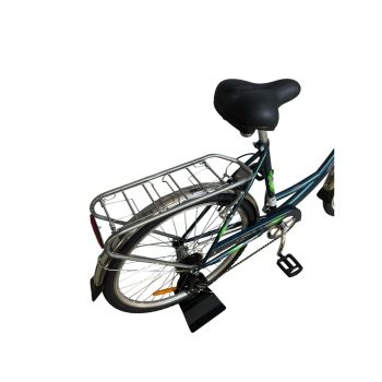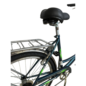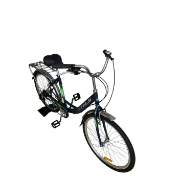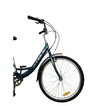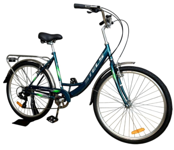 Женский дорожный велосипед с оборудованием начального класса Shimano, 7 скоростей. Технические особенности: прочная стальная рама (интегрированный подседельный хомут, кареточный стакан BSA, открытая прокладка тросов), жесткая стальная вилка, двойные алюминиевые обода (под AV ниппель), надежные ободные тормоза V-Brake (алюминиевые рычаги), защита цепи, длинные крылья, багажник, комфортное седло с эластомерами, звонок, катафоты, подножка. Подходит для прогулочной езды по шоссе и ровным проселочным дорогам. Диаметр колес - 26 дюймов. Вес - 16,2 кг.